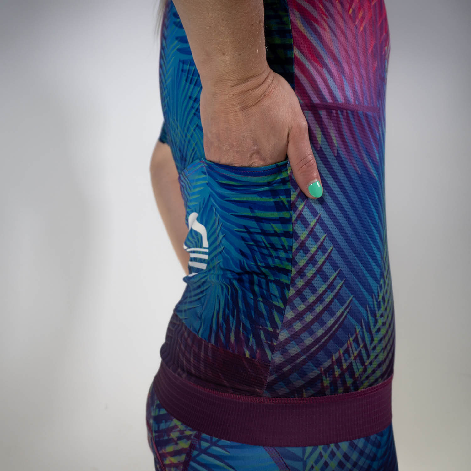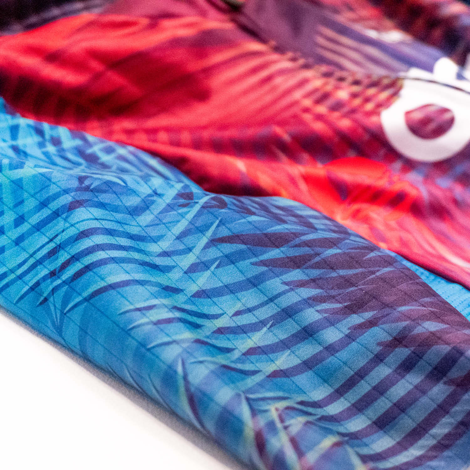 This jersey will help get you through your race or training day quicker and help keep you cooler. With a fitted racy feel and strategically cut panels you get a form fitting shape without being overly compressive. The Palms collection gives you a tropical island feel every time you suit up. Bring Kona with you wherever you go.