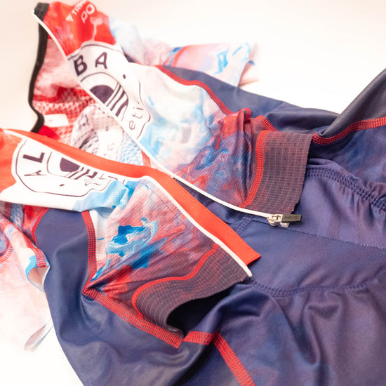 Creating a Triathlon suit that excels across all three sports is a challenge. Our Aero Tri Suit was developed to take you from swim, to bike to run in comfort, but also perform above expectations. The design of our Race Team Collection is based on a hand painted canvas with a colourful overlay. Join the team and pick one up today, everyone is welcome.