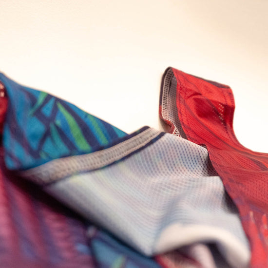 We wanted the lightest, most breathable, quickest drying and well-fitting tank top for the hottest training days and races. This "singlet" is a step above your typical tank top with its performance kite fabric and mesh panels. The Palms collection gives you a tropical island feel every time you suit up. Bring Kona with you wherever you go.